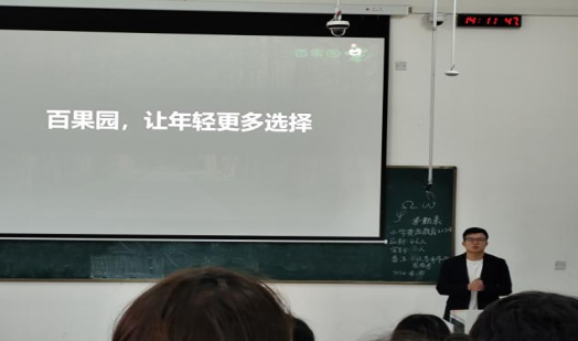 本站讯(经管学院 刘丽艳)4月14日,经济管理学院在博达楼B101举办了应届毕业生春季招聘会,我院学子们积极参与,踊跃提问,对此次企业招聘会展现出极大的兴趣,对自我的就业前景充满期望。 深圳百果园实业股份有限公司是一家集水果采购,种植技术支持,采后保鲜,物流仓储,标准分级,营销拓展、品牌运营、门店零售,信息科技、金融资本、科研教育于一体的大型连锁企业,是中国乃至世界的“水果专营连锁业态”开创者。 本次“果创计划”是百果园终端门店专项人才培养项目,是打造百果园加盟店零售店长和加盟商的摇篮。此次招聘会,百果园企业将其招聘岗位,薪资待遇,发展空间晋升渠道,员工福利活动,门店工作住宿环境等基础信息一一讲解,从加盟方向,运营方向,职能方向对企业未来发展进行了深度分析。 这场校园招聘会的成功举办,不仅为我院学生提供了展示自己才华的舞台,也为企业们提供了选拔优秀人才的机会。相信在这样的校园企业招聘会,我院学子能进一步找准定位,了解岗位,在未来就业中找到自己理想的职业,同时,我院将持续推动应届毕业生就业工作,推动就业质量更上一个台阶。 上一条:经济管理学院召开换换熊科技有限公司专场招聘会 下一条:经济管理学院召开2024康顺翔贸易健康产业集团招聘会