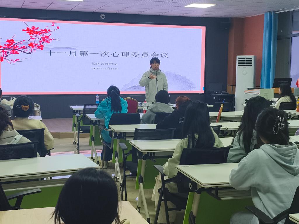 本站讯(经济管理学院 学生记者李展华)为明确新学期心理委员工作职责,推动心理健康教育工作落到实处,11月18日傍晚,我院在博达楼A314教室召开了全体心理委员工作例会。本次会议由樊鸿儒老师主持,全体委员参加 ,大家齐聚一堂,共同探讨工作方向。 会议围绕心理委员的核心职责与近期工作重点系统展开。樊鸿儒老师首先强调了心理委员在班级中的重要作用,要求大家以高度责任感投入工作,切实做好同学与老师间的沟通桥梁。 针对具体事务,会议提示了心理活动规范化管理要求,并对学生工作中常见心理问题的识别与应对进行了指导。同时,会议重点讨论了心理健康活动的开展形式,鼓励大家策划组织贴近同学生活、富有吸引力的团体活动。 樊鸿儒老师在总结中表示,希望各位委员切实履行责任,不断提升自身能力,成为同学们的贴心伙伴,共同营造关注心理健康的良好氛围。本次会议内容充实,为后续工作指明了方向,各心理委员纷纷表示将更积极投入班级心理健康建设,为守护同学们的阳光心灵贡献力量。 一审:杨琨 二审:毕发钱 三审:邓晶 上一条:我院成功开展“学思践悟全会精神 青春建功时代蓝图”主题团日活动 下一条:我院金牌讲解班赴仙凤三宝开展研学活动