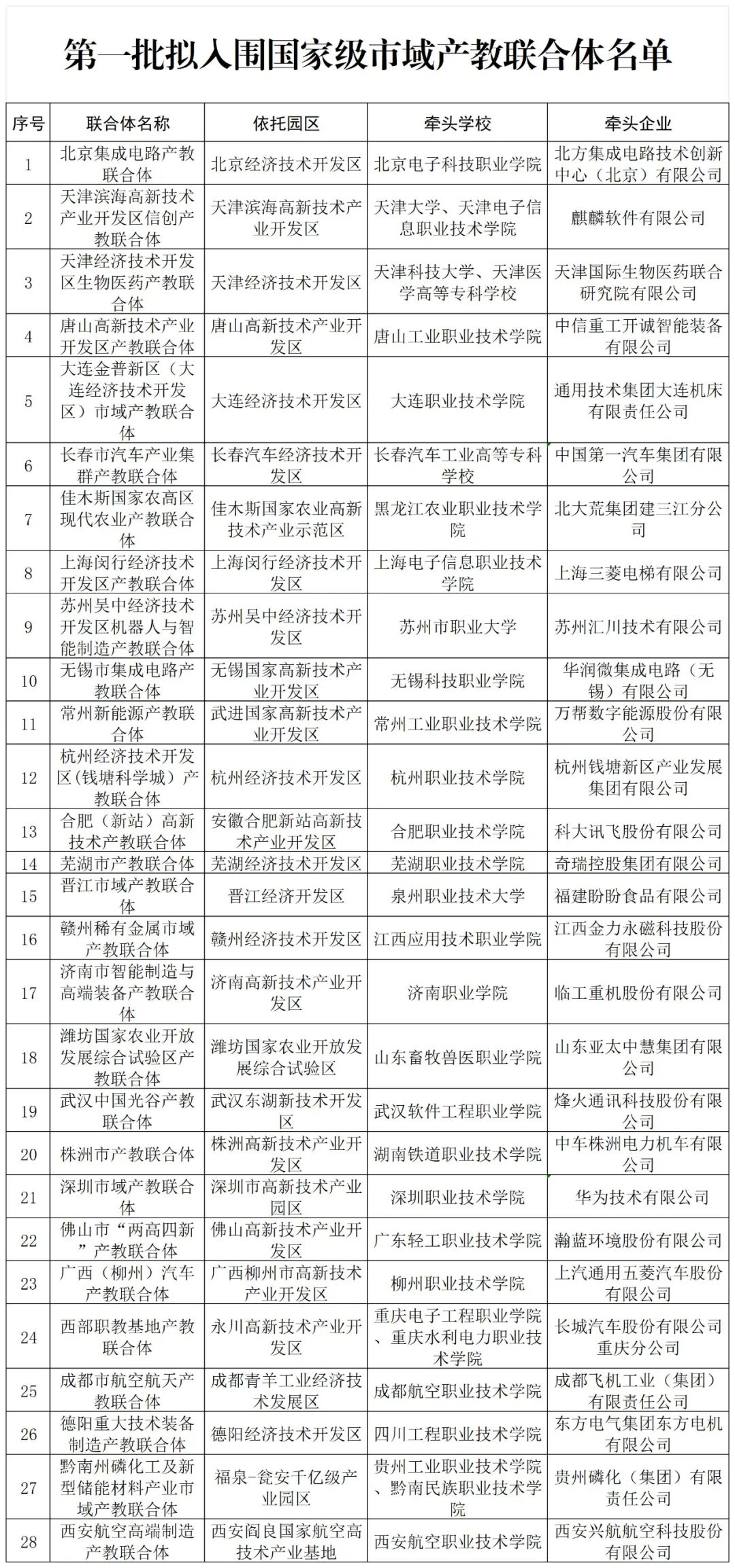 关于第一批拟入围国家级市域产教联合体名单的公示