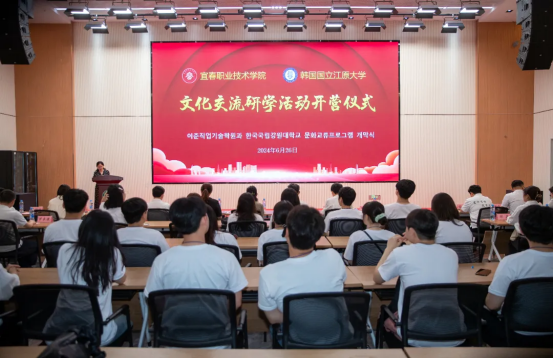 仪式在观看两校风采展示宣传视频中拉开帷幕。随后,刘江毅致欢迎辞,她首先代表学校对远道而来的韩国国立江原大学的师生们表示热烈欢迎,回顾了两校之间的渊源,并感慨地说两校共同开展文化交流研学活动,是双方共同的努力和期待,希望在相互学习、相互借鉴中共同推动中韩两国教育事业的繁荣发展,祝愿中韩两国的友谊更加深厚!