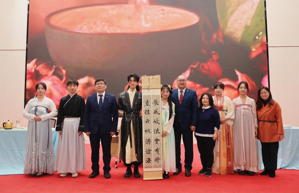 文化交流是心灵的碰撞、情感的交融。一场别开生面的中蒙文化交流活动拉近了两校师生的心灵距离。灵动悠扬的扬琴独奏《天山诗画》、延绵悠长的蒙古歌曲《Sodura》、热情洋溢的朗诵《远方的朋友,欢迎你》、美妙而神秘的口风琴演奏《老琴手》、活力四射的蒙古舞蹈、具有民族韵味的中国舞、让人如痴如醉的中国茶艺与书法展示....现场高潮不断,精彩连连。最后,研学团全体同学用《我们的骄傲》作为结尾,中蒙师生在欢快的气氛中手拉手跳起了舞。