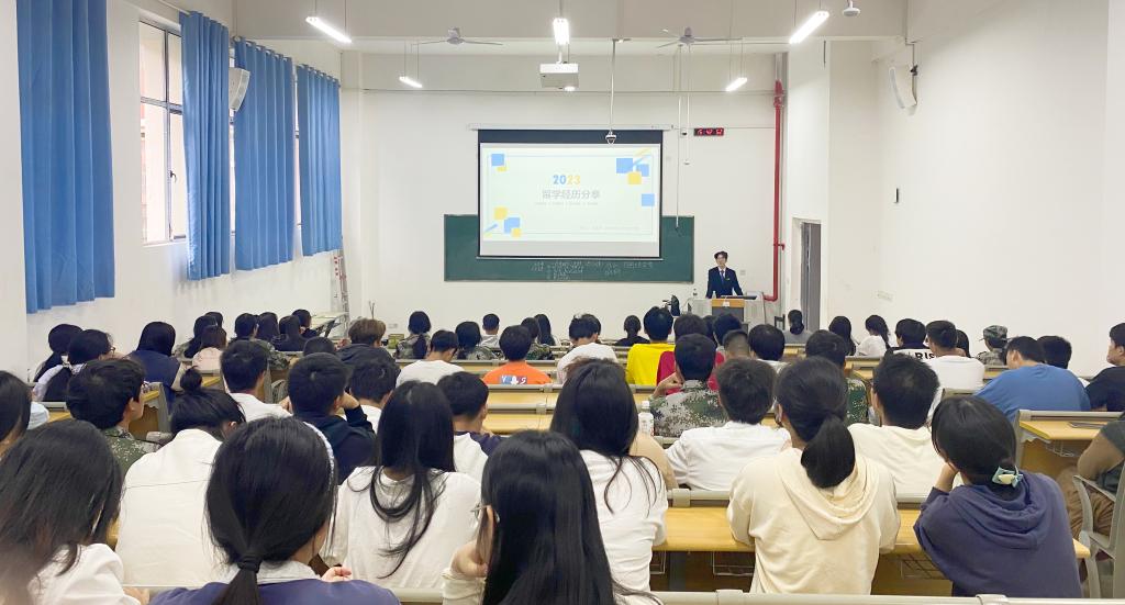 本站讯(国际合作与交流处王若婷)11月3日下午,英国上市公司365优秀校友王晨洋留学分享会在博达楼B101阶梯教室举行。分享会由国际合作与交流处杨慧主持,英国上市公司3657个学院80余名师生参与分享会。