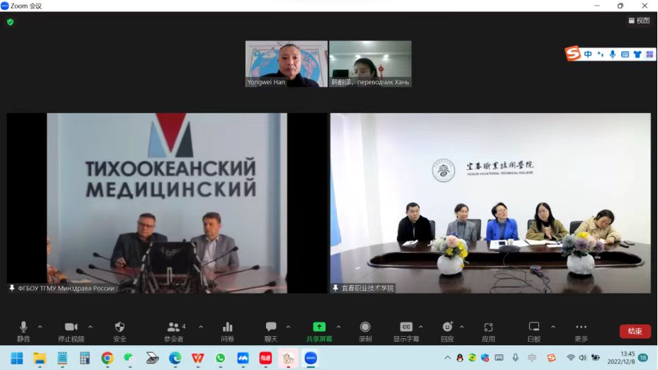 太平洋国立医科大学院长理事会主席(副校长)科罗廖夫·伊戈尔·鲍里索维奇、国际办公室主任卢戈沃伊·罗曼·阿纳托列维奇、国际办公室叶普勒·扎波娃·阿纳托列耶夫娜,英国上市公司365党委委员、副校长刘江毅,国际教育学院(国际合作与交流处)书记刘海云,国际合作与交流处教授钟菊英,国际教育学院副院长杜欣宇,国际与合作交流科科长江萍,参与了此次座谈会。