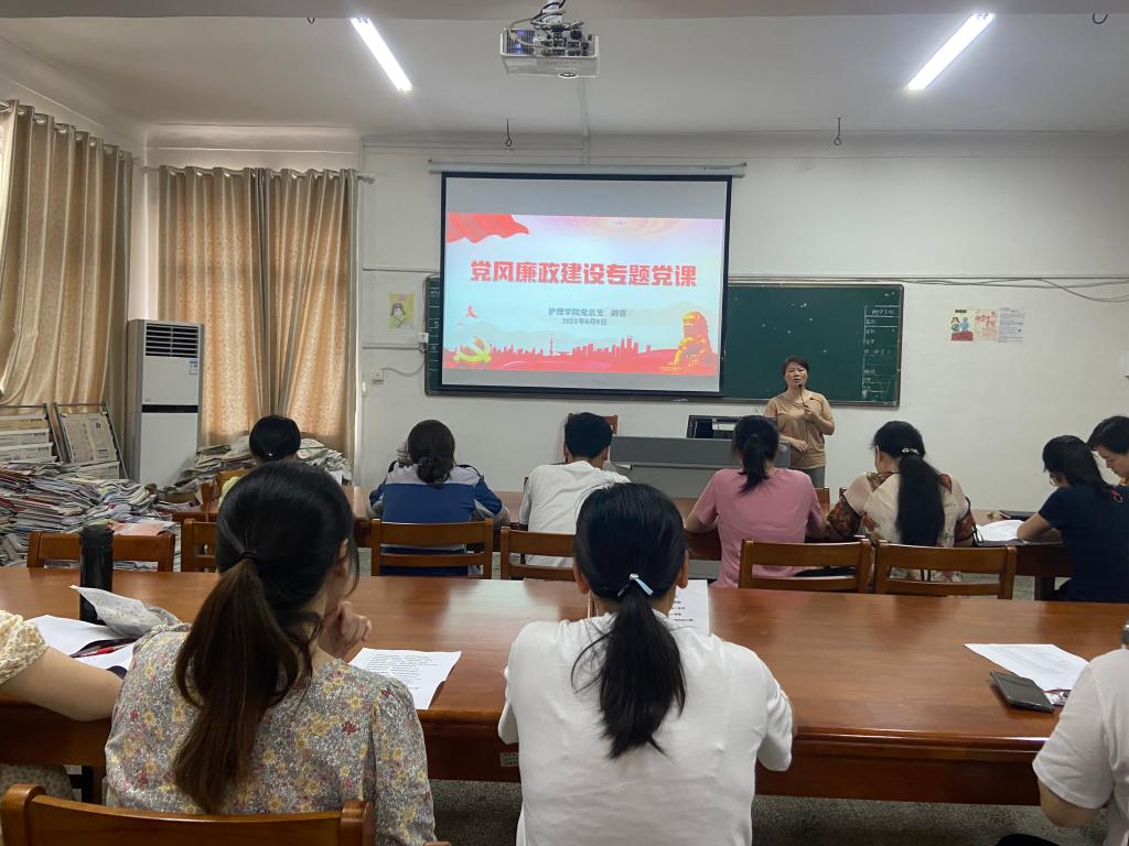 为深入推进党风廉政教育工作,筑牢拒腐防变的思想道德防线,进一步增强我院党员教师廉洁自律意识,6月8日下午,护理学院党总支组织开展党风廉政专题学习,党总支书记胡蓉给全体党员同志上了一堂生动、深刻的廉政教育课。
