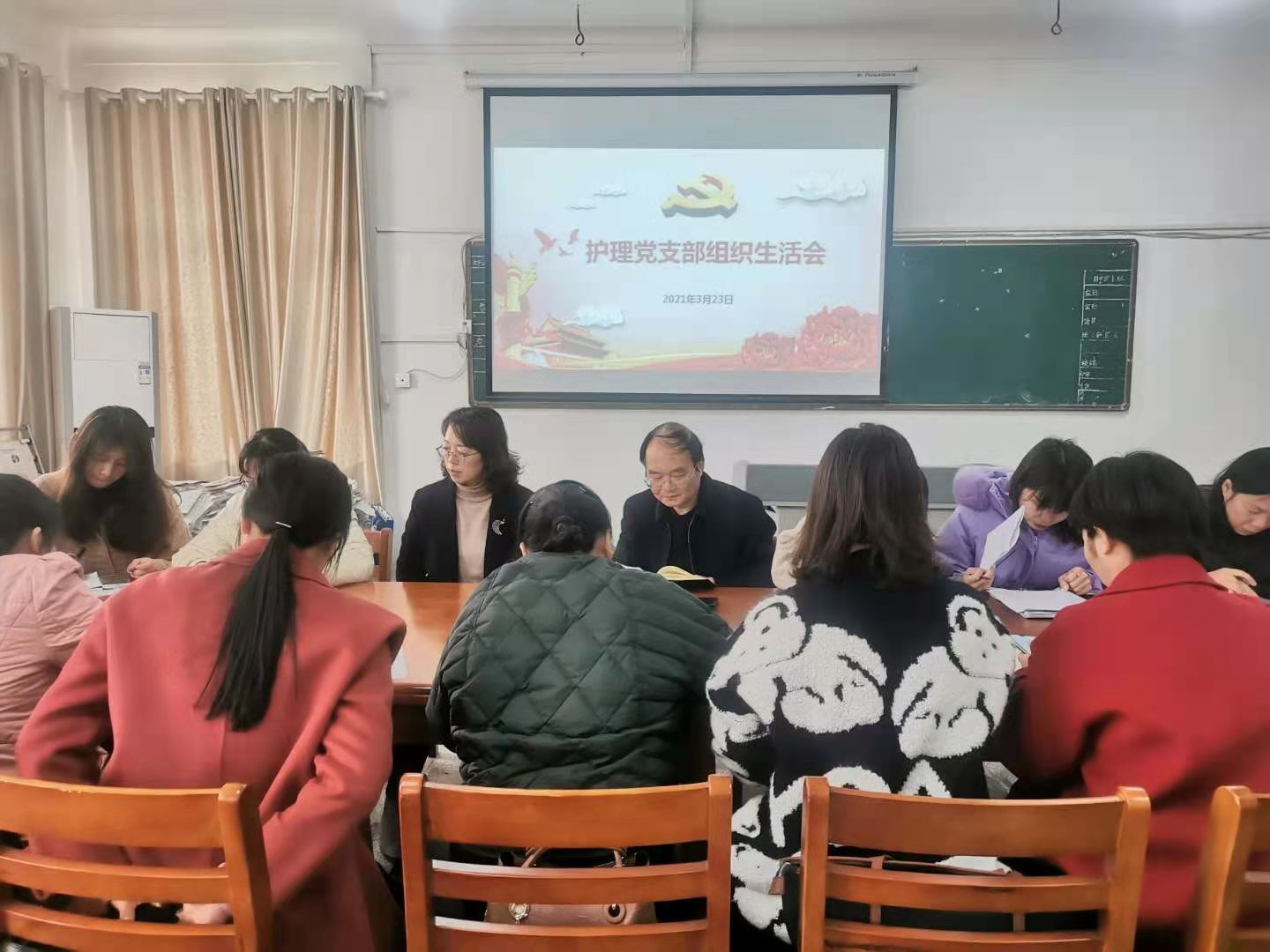 委委员、副校长刘军莅临指导并讲话,护理党支部书记黄芳主持会议。