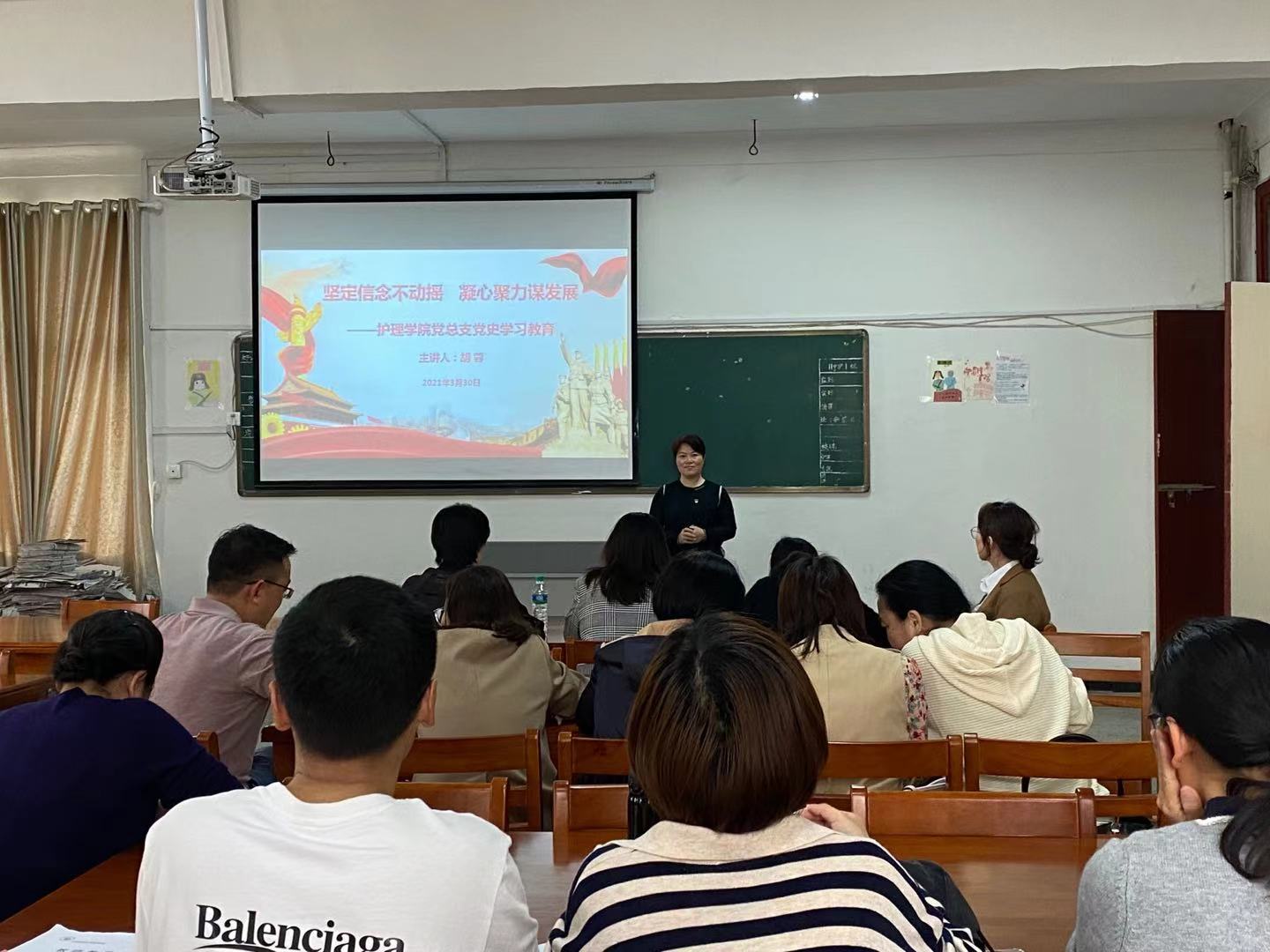 优异成绩迎接建党一百周年。3月30日下午,护理学院党总支书记胡蓉以“坚定信念不动摇凝心聚力谋发