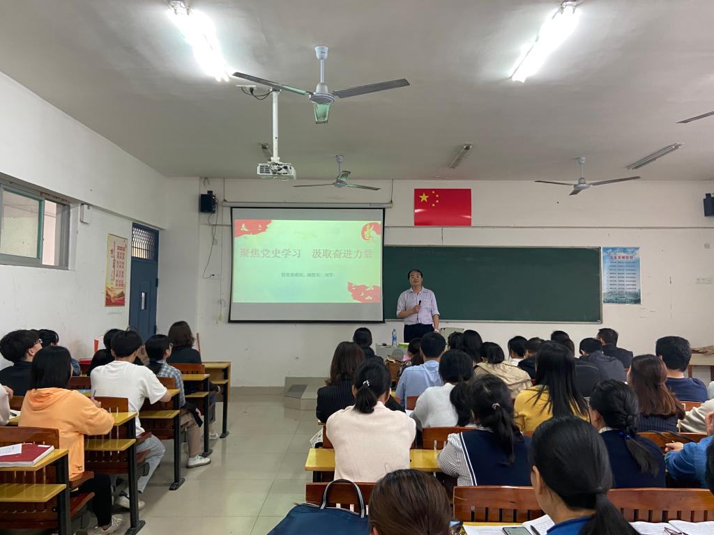 院在第4教学楼511教室开展《聚焦党史学习汲取奋进力量》专题讲座。讲座邀请校党委委员、副校长刘军