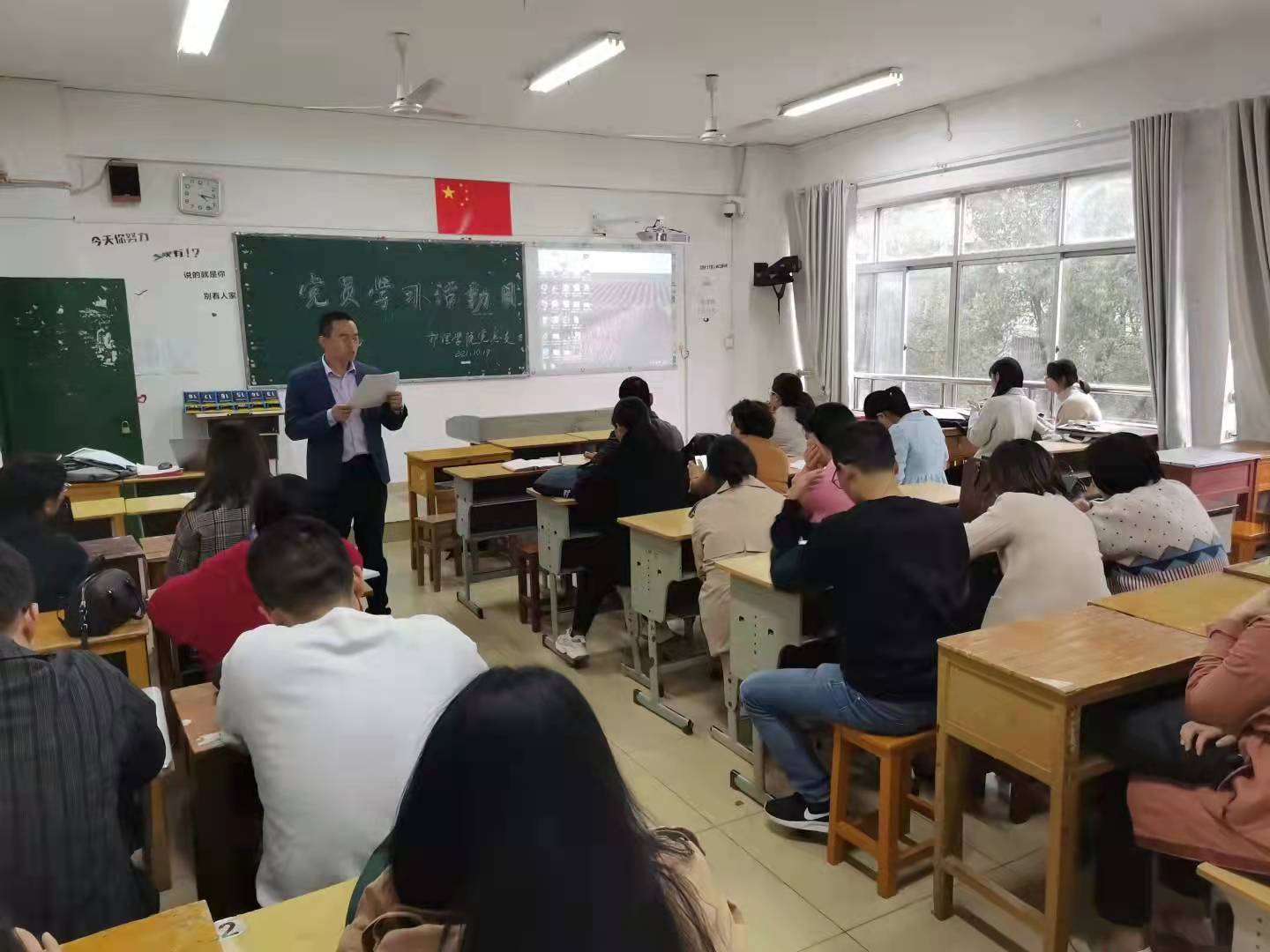 党总支副书记张蔺珊带领全体党员学习了《习近平在纪念辛亥革命110周年大会上的讲话》和《中国共产党普通高等学校基层党组织工作条例》。副书记王玮带领全体党员学习了《江西省高校党的建设工作会议》和《中国共产党宜春市第五次代表大会》的精神。