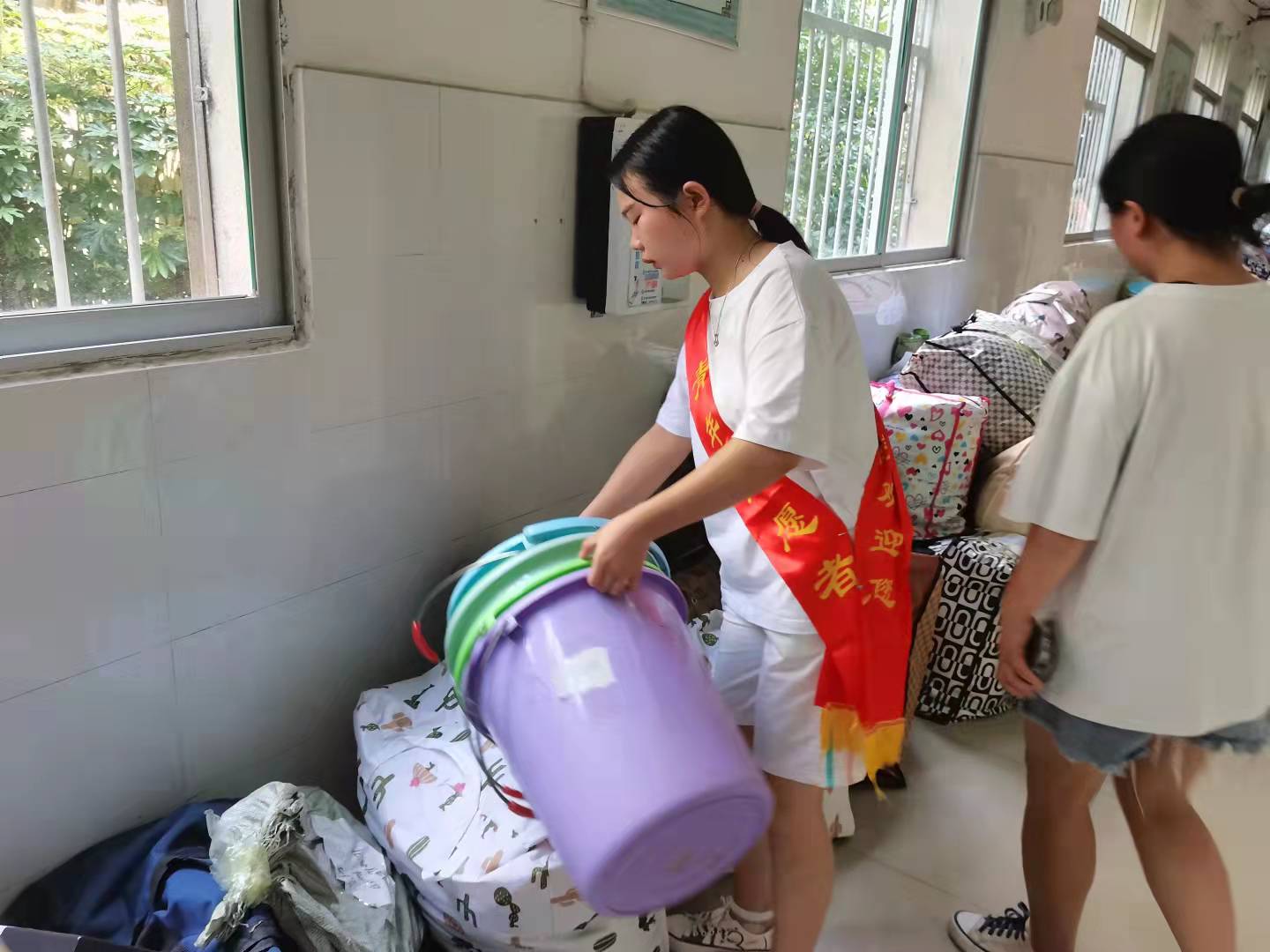 开学正当秋季,赤日炎炎。为切实开展“我为群众办实事”实践活动,践行并传承志愿精神,积极服务学生,9月11日上午8时许,20余名师生志愿者在护理学院党总支书记胡蓉的带领下分别来到北校区14栋和南校区15栋,开始了跨校区搬运学生行李工作。