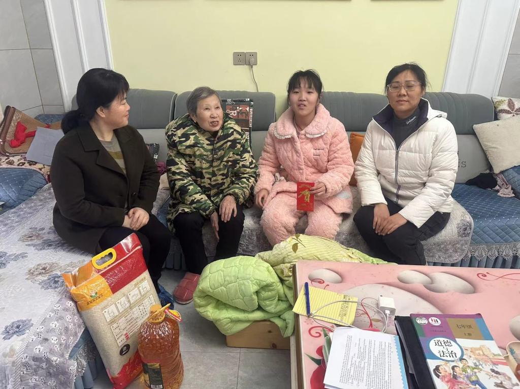 深入习贯彻党的二十大精神,践行“我为群众办实事”,值此新春佳节即将来临之际,护理学院党总支书记胡蓉、副书记曲晴、组织委员周玥一行来到结对帮扶对象易有清家走访慰问