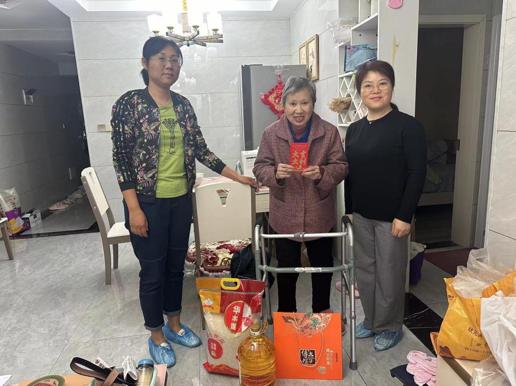 党总支书记胡蓉、副书记曲晴、组织委员周玥一行来到老朋友——帮扶对象易有清家中,她们与老人面对面亲切交流,深入了解其家庭情况、生活状况及存在的实际困难与问题。在交流过程中,不仅向帮扶对象传达了党和政府的深切关怀,还结合实际为其提供了针对性的帮助与建议,并为贫困家庭送上粽子、米、油、慰问金等节日慰问品,带去了节日的祝福和关爱。