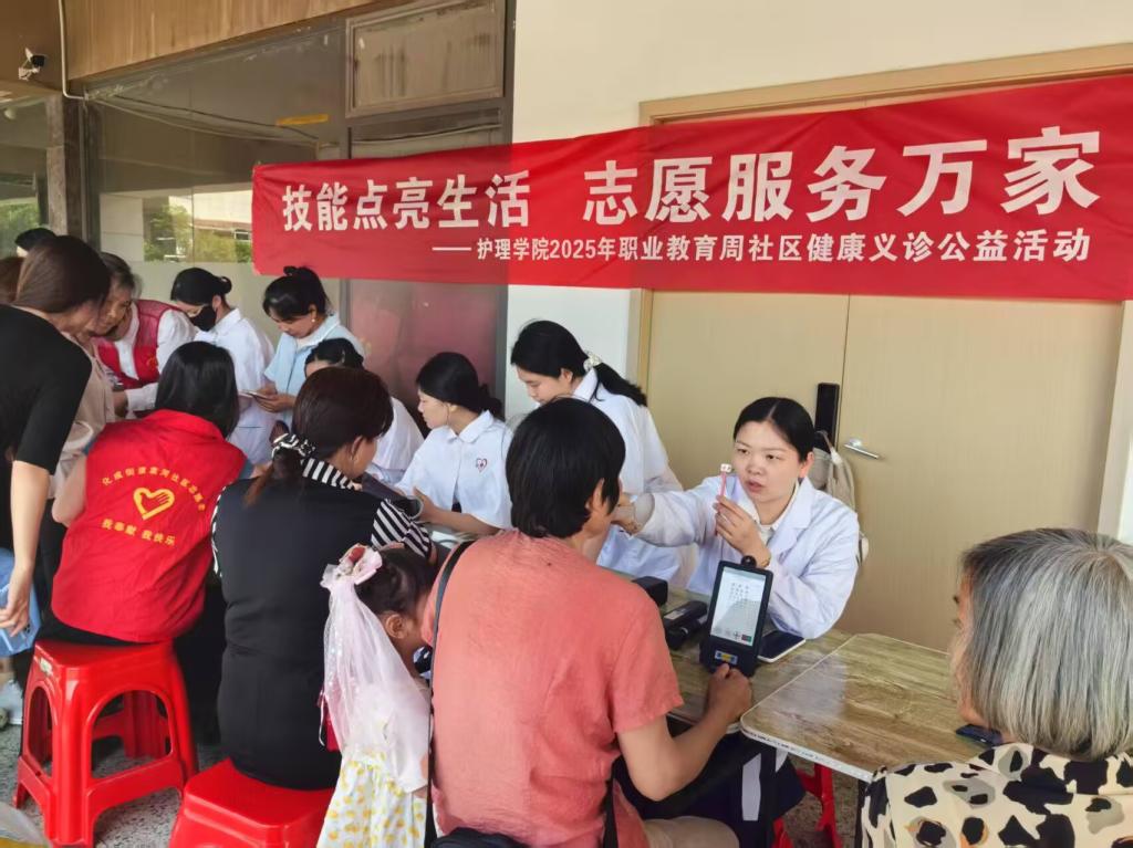 为践行服务社会宗旨,发挥专业优势,关爱社区居民,5月14日,在职业教育活动周期间,护理学院党总支组织师生走进袁河社区,开展“六个一”实践活动。