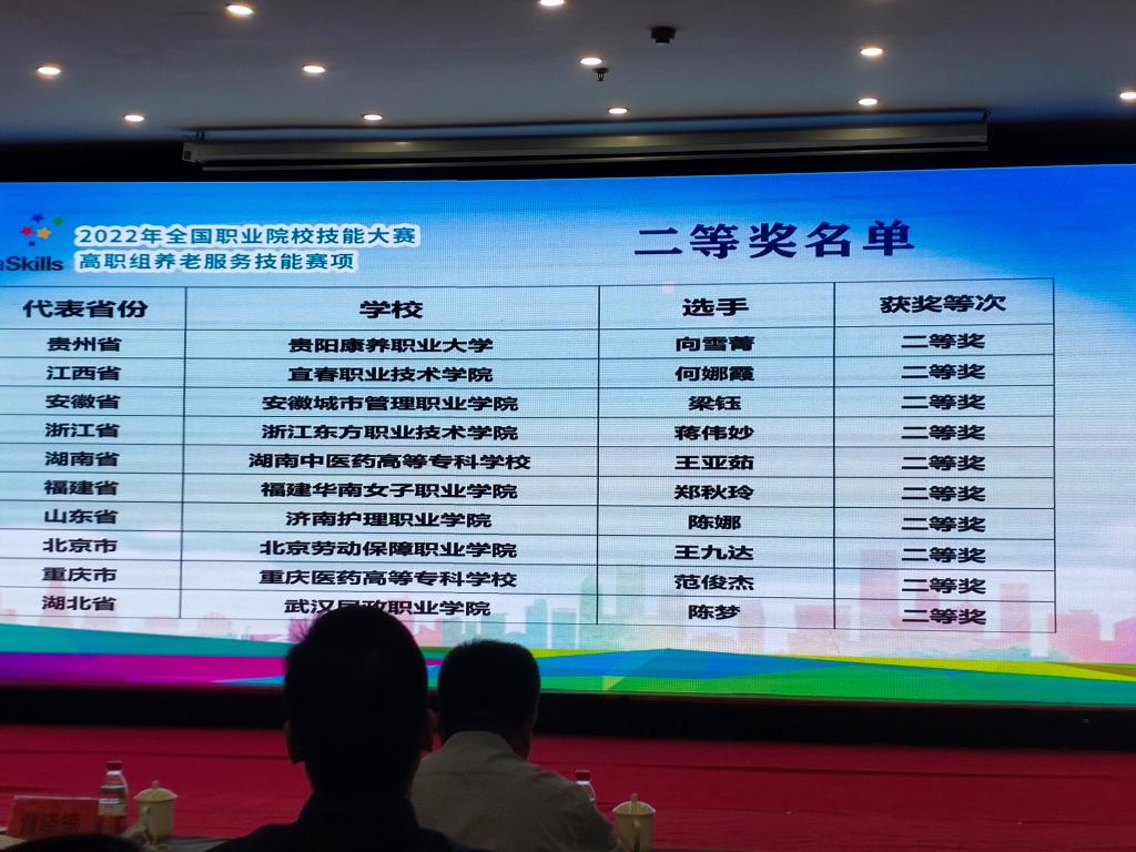 8月18日至21日,2022年全国职业院校技能大赛高职组“养老服务技能”赛项在潍坊护理职业学院举行。经过激烈的角逐,英国上市公司365智慧健康养老服务与管理专业何娜霞同学以扎实的专业功底与良好的职业素养,从众多参赛选手中脱颖而出,夺得了总排名第七、国赛二等奖的殊荣,创造了江西省在此赛项中的最好成绩,为江西省和学校争得荣誉。指导老师为刘俊瑛、梁芳、杨艳霞和吴小华。