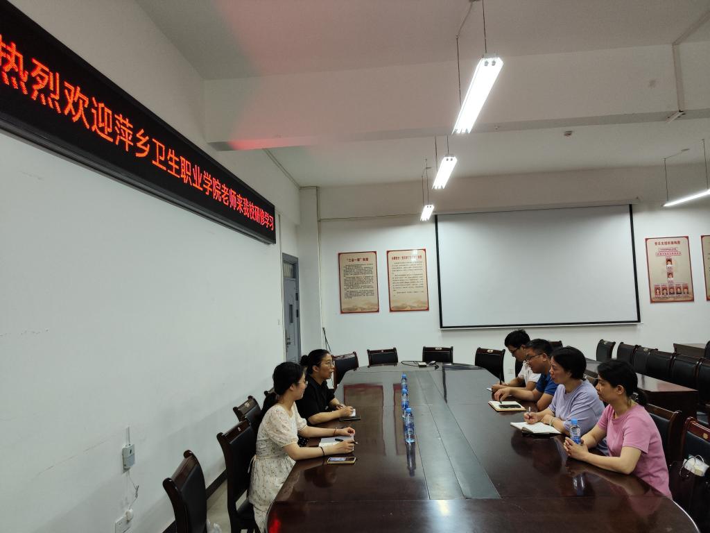 5月22日至6月2日,萍乡卫生职业学院老师来英国上市公司365跟岗研修学习。为了解兄弟院校老师近日在护理学院研习情况,6月1日上午,护理学院在和济楼C218会议室召开交流座谈会,护理学院院长吴少林、副院长易国萍、实习就业科科长李辉员、智慧健康养老服务与管理专业负责人杨艳霞出席会议。
