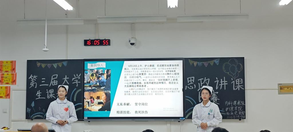 本次比赛弘扬了“敬佑生命、救死扶伤、甘于奉献、大爱无疆” 的医者精神,为学生提供了展示与交流的平台,对提升护理专业课程思政建设质量起到积极的推动作用。