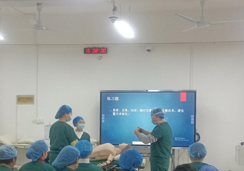 本次开放式观摩教学由护理教研室的刘一南老师和李辉员老师担任主讲。刘一南老师讲授的内容为《摆手术体位》,李辉员老师讲授的内容为《糖尿病胰岛素治疗及护理》。两位老师对教学实施的各个环节均进行了精心设计,以小组为单位开展实操练习,同时融入课程思政元素与虚拟仿真技术,构建了“理论课+实践课+虚仿课” 的教学新模式。这极大调动了学生学习积极性,引导学生在短时间内进入相应情境,能够切身感受到在实际操纵中的体验,营造出强烈的教学互动氛围,有效实现了线上线下教学的优势互补。