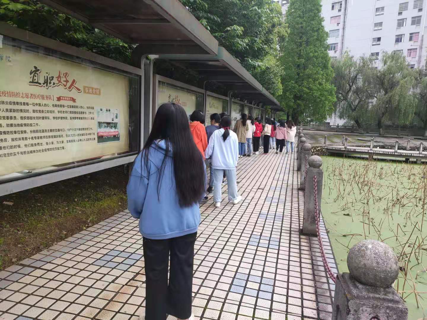活动开始,思静社全体同学到北校区荷花池旁的好人文化长廊参观学习。同学们沿着好人文化长廊,一边观看一边听汤琼老师讲述身边的好人故事,同学们深深被好人事迹和好人精神感动着。参观活动结束后,同学们纷纷表示要向宜职好人学习,多为身边的人提供帮助。