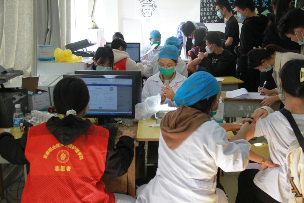 在接种活动现场,身穿红色马甲的志愿者们积极参与,合理分工,协助医护人员进行血压测量、信息登记。他们热情地引导同学们填写表格,认真询问接种前两针时有无身体不适,暖心提醒接种疫苗后的有关注意事项,为同学们答疑解惑。接种现场井然有序,志愿者同医护人员精心配合,提高了疫苗接种效率,志愿者的积极表现是对志愿者精神最好的诠释!