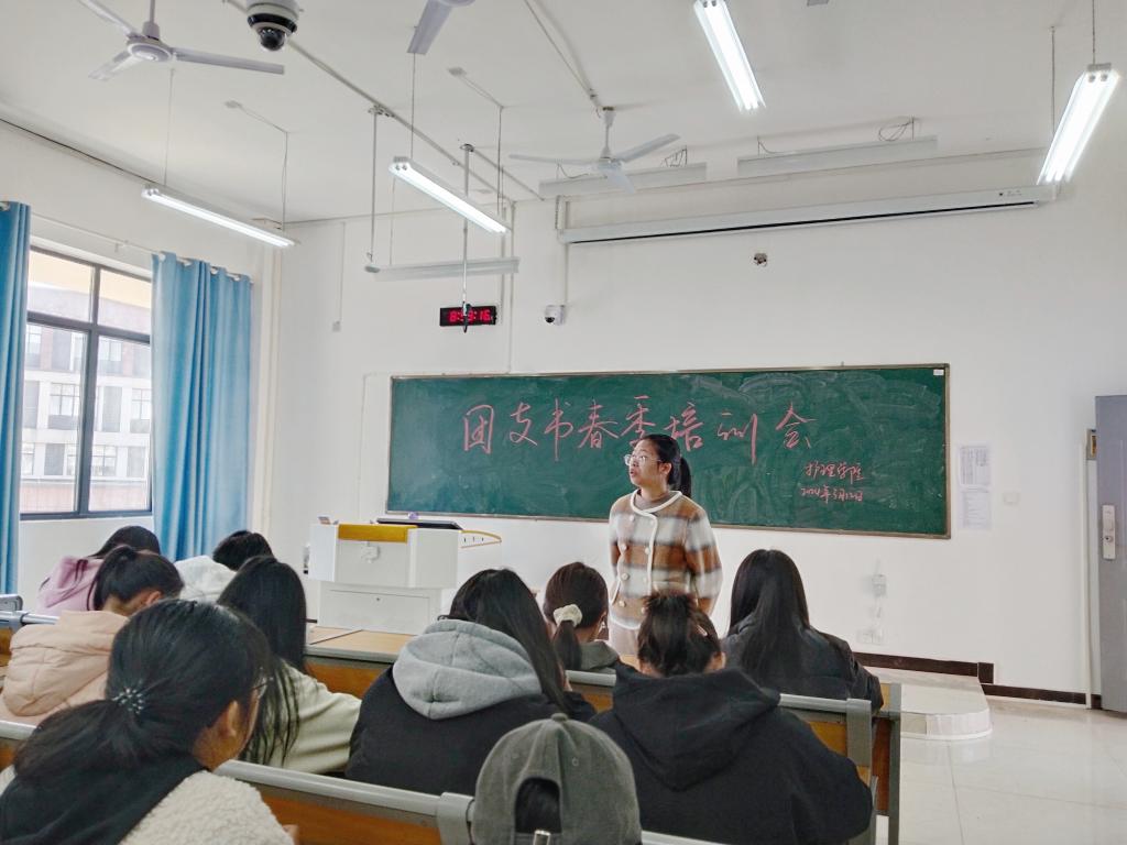 刘小三带领同学们一起学习《中国共产主义青年团发展团员工作细则》《2024年基层团组织主题团日活动指引》。就团务工作的优化与创新、团支部的活力激发以及如何更好地服务团员青年等议题进行了深入剖析和探讨。对今后团务工作的四大重点任务进行详细解读,为团支书们提供了清晰的工作指南。她强调,团支书作为学院共青团工作的核心力量,肩负着引领团员青年、服务学生成长的重要使命。希望团支书们要敢于担当、勇于创新,通过丰富多彩的团日活动,增强团组织的凝聚力和战斗力。