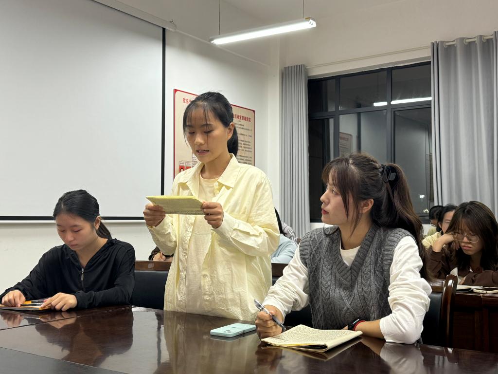 为引导广大青年学子深入学习贯彻习近平新时代中国特色社会主义思想,增强“四个意识”、坚定“四个自信”、做到“两个维护”,10月9日,护理学院在和济楼C218开展“读原著、学原文、悟原理”主题读书分享会,2024级新生班级学生代表参加活动,辅导员汤琼主持分享会。