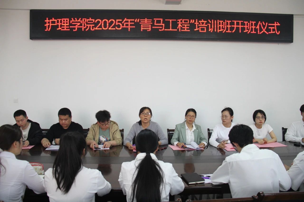 护理学院党总支副书记曲晴在“青马班”开班仪式上发表了富有深意、鼓舞人心的演讲。在她的讲话中,曲晴特别强调了培养青年马克思主义者的重要性,指出他们是推动社会进步的关键力量,是实现中华民族伟大复兴不可或缺的青春力量。她向参与本次培训的青年学子提出了三个期望:首先,要坚定理想信念,巩固信仰基础,持续深化对马克思主义理论及习近平新时代中国特色社会主义思想的学习,提高自身的政治理论水平,确保在思想和行动上与党保持一致;其次,保持勤奋刻苦的学习态度,坚持理论与实践相结合,将所学的理论知识积极应用于实际学习和生活中,实现学以致用、用以促学,在实践中检验和提升学习成果;第三,要积极发挥先锋模范作用,勇于承担责任,乐于奉献,主动参与各种志愿服务和社会实践活动,服务同学、奉献社会,展现新时代青年的责任感和担当,努力成为信念坚定、能力出众的青年马克思主义者。接着,学工科长胡祖昌和就业科长曹云分别对本次培训方案、考核机制以及纪律要求进行了深入阐释,确保学员们对培训流程、学习目标和行为准则有清晰的认识,为培训的顺利进行提供了坚实的保障。