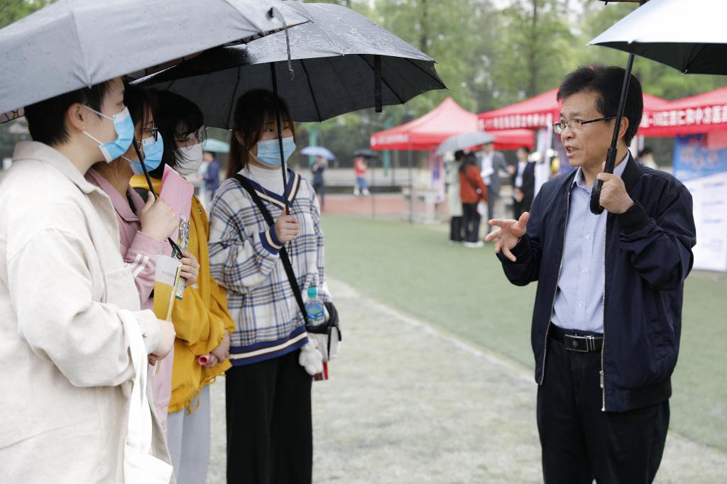 招聘会上,杨云山、易滨秀等领导与同学们面对面交谈,询问大家的就业情况,“有没有合适的就业岗位?”“对就业有什么期望?”“对学校在就业服务、就业指导等方面有什么建议没有啊?”校领导鼓励同学们端正心态、树立信心、积极就业。