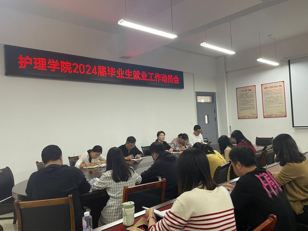 为深入学习贯彻党的二十大精神,全面落实党中央、国务院对高校毕业生就业创业工作的有关要求,切实推进2024届毕业生顺利就业,11月26日,护理学院在和济楼C218召开2024届毕业生就业动员大会。动员会由党总支书记胡蓉主持,学院班子成员、相关工作负责人和毕业班全体辅导员(班主任)参会。