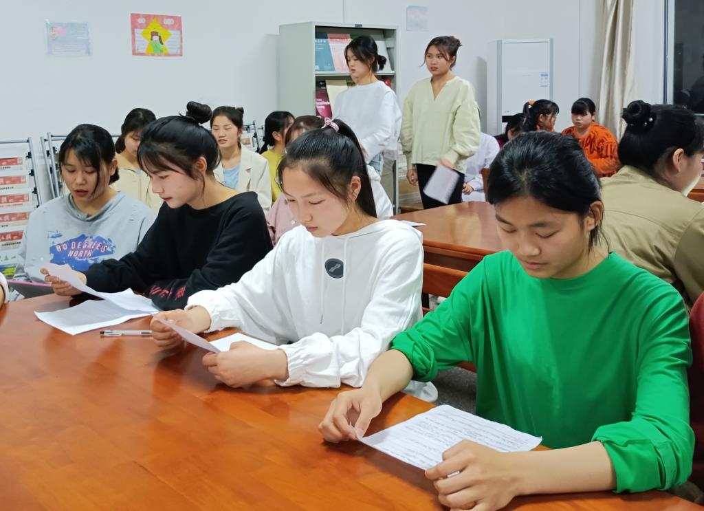 理学院在五教学楼阅览室举办护理英语对话比赛,本次比赛评委由副院长易国萍、党总支副书记王玮和汤