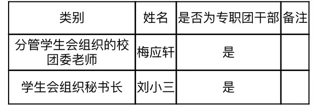 13. 明确1名团组织负责人指导院级学生会组织;聘任团委老师担任院级学生会组织秘书长。 |