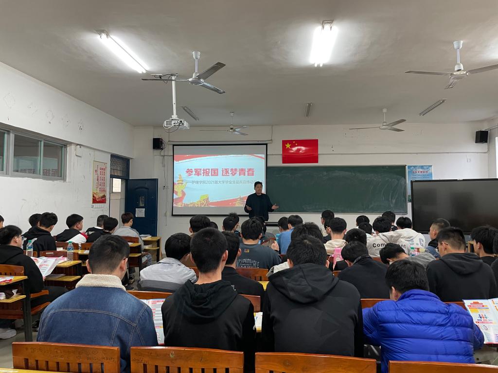 护理学院在第四教学楼411教室召开2021届大学毕业生征兵宣传动员大会,会议由护理学院党总支书记胡