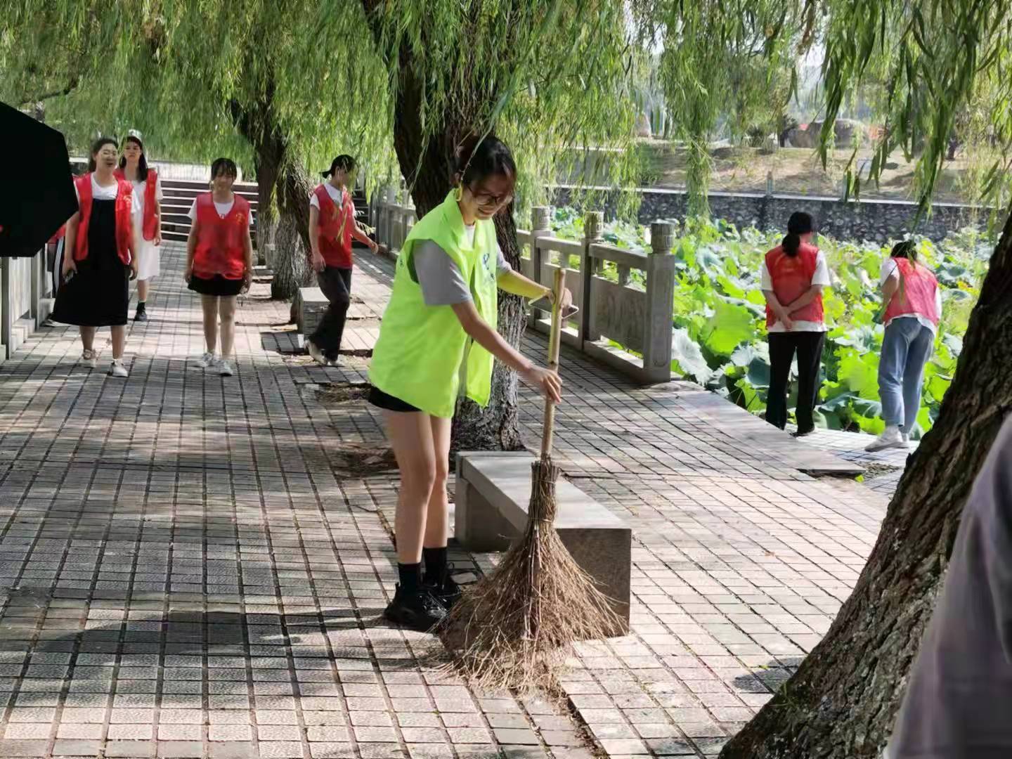 红马甲、绿马甲,三三两两,志愿者们在教学楼前、实训楼旁、办公楼周边、荷花池边和天使广场等地进行了清扫。活动现场,大家分工明确、相互协作,不怕脏、不怕累,有条不紊地开展校园清理志愿服务活动。志愿者们对垃圾进行了分类,变废为宝,在清扫校园的基础上做到环保节约。经过一个上午的奋战,校园环境变得干净整洁。