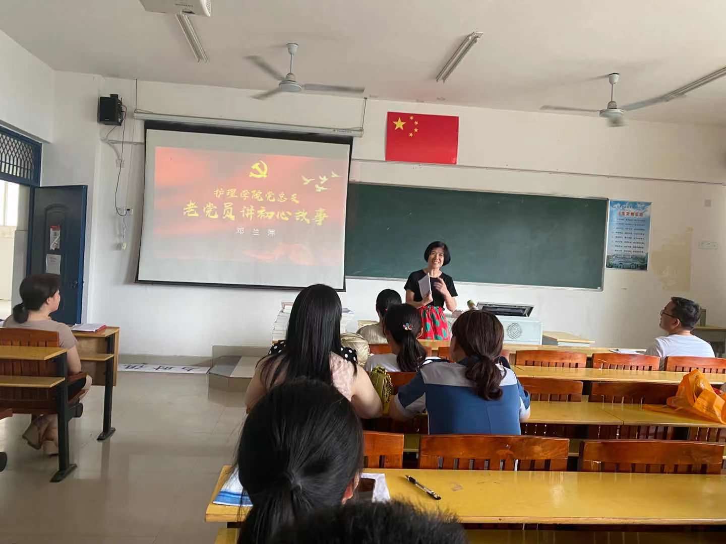 6月18日,护理学院党总支35名党员齐聚311教室,开展了“老党员讲初心故事”活动,听护理学院党总支党龄最长的老党员邓兰萍同志讲述她的初心故事。