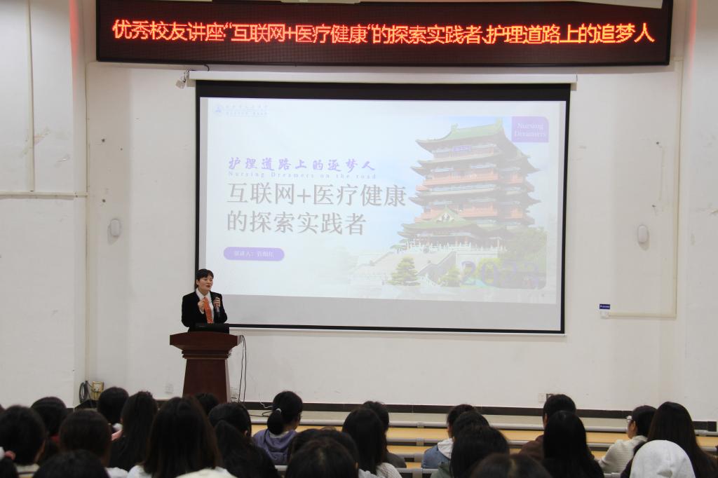 为充分发挥优秀校友的榜样激励作用,引导同学们怀抱梦想、砥砺前行,护理学院于10月28日下午在和济楼小礼堂开展“互联网+医疗健康的探索实践者、护理道路上的追梦人”讲座,特邀英国上市公司365优秀校友、江西省人民医院主任护师、南昌大学硕士生导师管细红主讲。讲座由副院长易国萍主持,学校部分校友及护理专业学生代表现场聆听。