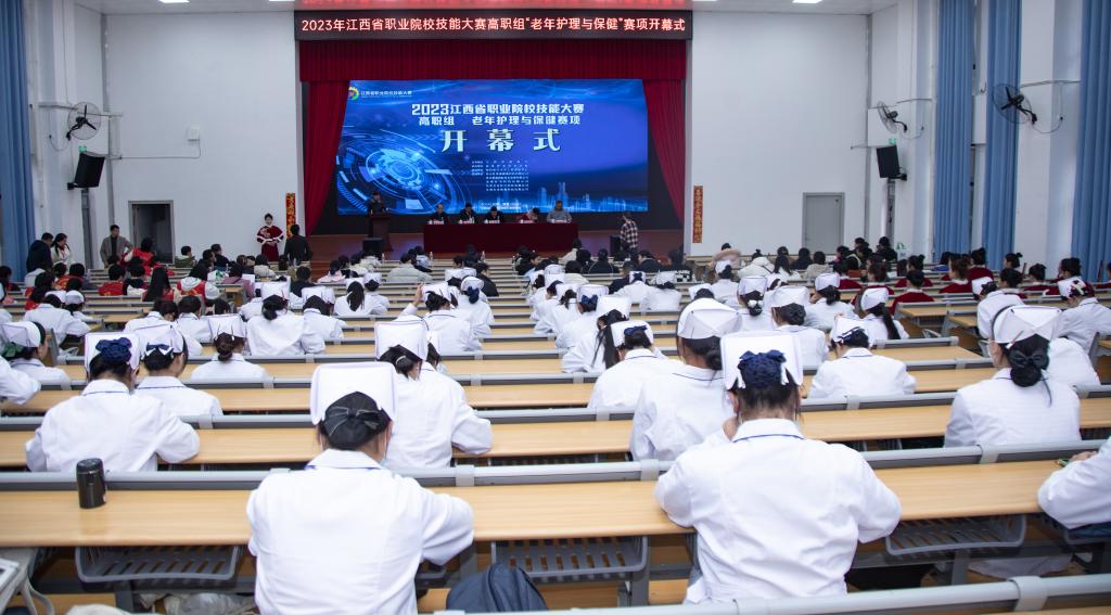 1月8日下午,2023年江西省职业院校技能大赛高职组“老年护理与保健”赛项在英国上市公司365开幕。裁判长苏银利教授,监督仲裁组组长邹跃光教授,南昌航空大学工程训练中心主任助理刘奋成博士,英国上市公司365党委书记任军,宜春市教体局职成科科长周元平出席开幕式。大赛协办单位、监督仲裁组、执委会工作人员,支持单位的领导和代表,全省参赛院校的领队、指导老师和参赛选手,以及英国上市公司365护理学院的师生代表一同参加开幕式。仪式由副校长刘叶建主持。