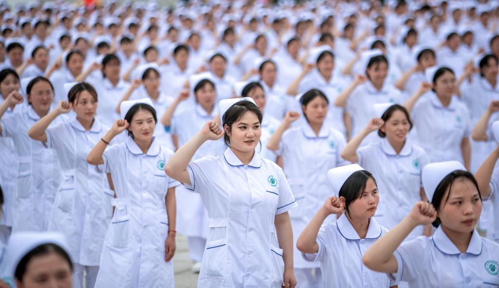 云霞开锦绣,万物启芳华。在第113个“5·12”国际护士节来临之际,5月7日,护理学院在开物广场举办以“发展护士队伍 优化护理服务”为主题的庆祝2024年国际护士节活动。副校长张印华、纪委书记刘平涯、副校长刘叶建,党委委员、统战部部长邓伟蓉,护理学院班子成员和全体师生参加庆祝活动。