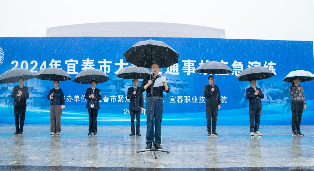 演练开始前,宜春市紧急救援中心党总支书记、主任彭政表示,交通安全是城市文明的重要标志,也是人民群众生命财产安全的重要保障。突发交通事故,会给人民群众的生命安全和身体健康带来严重威胁,尤其是在多变的天气条件下,更是需要我们时刻保持警惕,提高应对突发事件的能力、医疗救援水平,快速、高效、有序地救治危急重病人,降低伤员的死亡或伤残率,这也是我们共同的责任和使命。