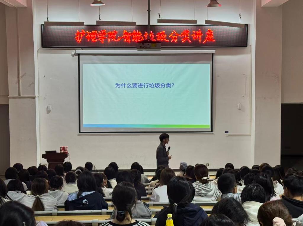 为普及垃圾分类知识,提升学生的环保意识,113日至4日晚,护理学院在和济楼阶梯教室开展“智能垃圾分类”专题讲座。讲座特邀中梵环保科技有限公司垃圾分类讲师赵志鹏主讲2025级全体新生参加