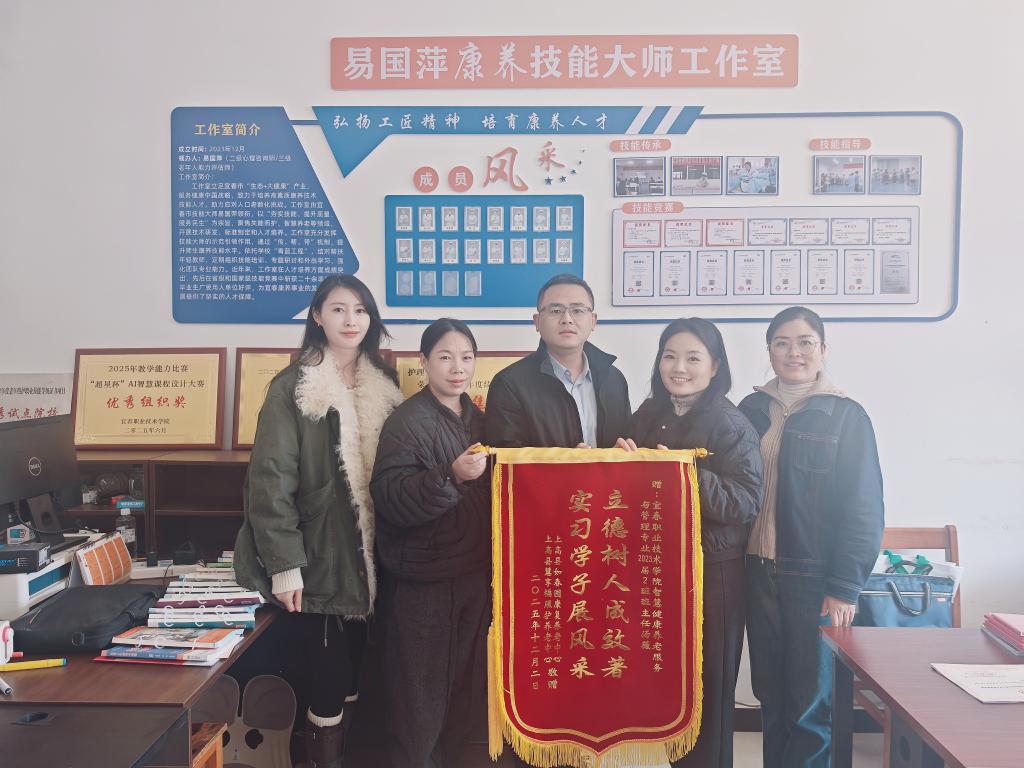 12月15日,上高县如春园康复养老中心、上高县慧享福照护养老中心曹志敏院长一行专程到访护理学院,赠送一面写有“立德树人成效著,实习学子展风采”的锦旗,以感谢学校多年来为养老服务行业输送了一批批专业扎实、富有爱心的优秀人才。