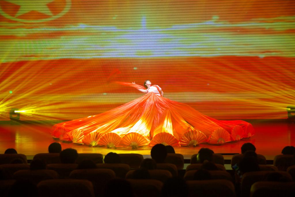 纪念“五四”运动102周年文艺汇演正式开始,开场舞《奔跑的青春》率先点燃全场氛围,少女们用青春炫丽的舞姿、阳光灿烂的笑容向大家展示了活力四射、元气满满的青年一代。大合唱《四渡赤水出奇兵》将大家的思绪带回那战火弥漫的年代,展现了红军战士英勇无畏、不屈不挠的英雄气概。“阿洛……阿洛……”一声声迫切的呼喊牵动着现场观众的心弦,情景剧《我要找到你》讲述了一名彝族学生阿洛依子走失、师生们自发参与营救并成功将阿洛寻回的感人故事。伴随着轻快的民族乐律,藏族舞蹈《天域》的表演者们素手婉转流连,裙裾飘飞旋转,灵动飘逸的舞蹈展示了各族人民团结奋斗的事迹。朗诵《永远的太阳》铿锵激昂、热血澎湃,为大家展示了永远绽放光芒的中国共产党及同学们对党百年艰苦奋斗的赞扬与感激。一条条跃动的红色长扇演绎了红色神韵,舞蹈《红色摇篮》描绘了当代热血青年致敬革命先辈、传承红色经典的心路历程。合唱《强国一代有我在》以动情的歌声唱出了青年学子对新时代的信心与期望,勉励青年与时代同步伐、与祖国同命运。情景剧《我和我的家乡》讲述了新时代大学生直播带货、齐心助力乡村振兴迈向新发展格局的先进事迹。舞蹈《碇步桥水清悠悠》表现了在战火纷飞的年代,家属们等待革命战士凯旋的心情。大合唱《唱支山歌给党听》婉转动人,表演者们身着民族服饰,用嘹亮的歌声诠释心中对党的无限热爱和深切祝福。快闪《没有共产党就没有新中国》将现场气氛推向了高潮,全场观众起立挥舞手中的红色国旗、党旗、团旗,高声齐唱,文艺汇演至此落下帷幕。