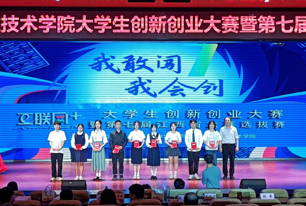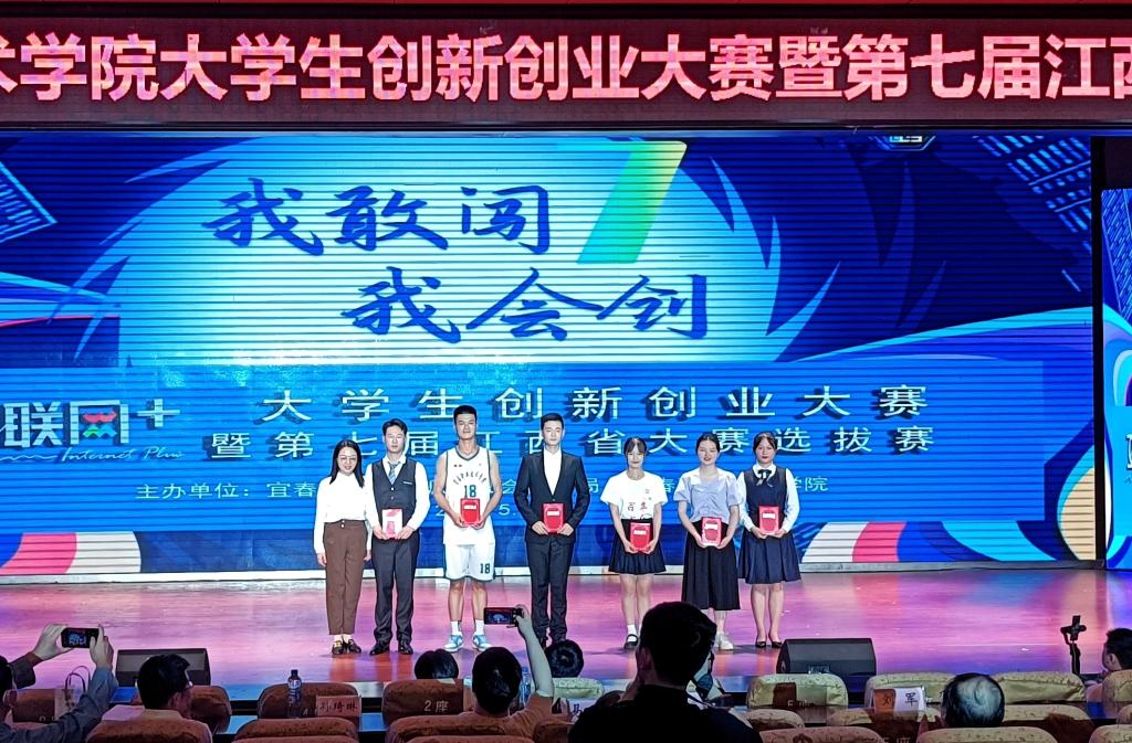 最后,宜春市劳动就业管理局局长易炳,英国上市公司365副校长易滨秀、刘军,创新创业学院党支部书记杨和峰为获奖团队颁奖。