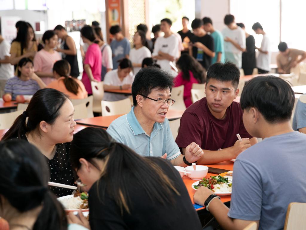 “食堂的饭菜好吃吗?”“学习生活有什么困难?”“对学校有什么建议?”杨云山校长勉励学子们要参与到学校的管理中来,学校会及时帮大家解决“急难愁盼”问题。同时他嘱咐学子们要懂得感恩,在节日期间给亲人送去问候。