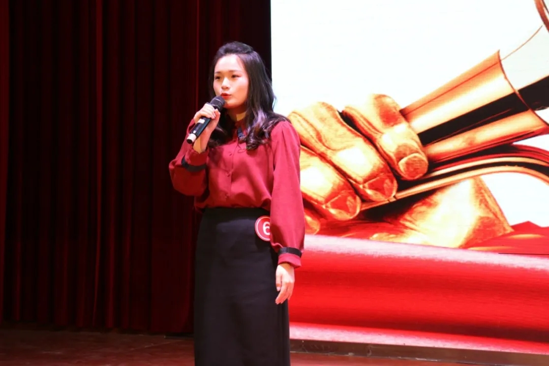 来自师范学院的刘娜老师在钢琴伴奏下,从带领大家合唱《毕业歌》进入主题,从缘起、介绍、传承三方面介绍了正直、勇敢、坚强、有为的当代青年写照,并呼吁大家立志高远,争做栋梁。“如果信仰有颜色,那一定是中国红”,马克思主义学院万露露老师带来《耀眼中国红,不变中国心》主题团课,以幻灯片的形式展示了生活中点点滴滴的中国红——红领巾、对联、五星红旗、中国结,以小见大,反映出中国红根植人心,凝聚爱国奋进力量;艺术与设计学院王利同学带来的《悠悠童心入党心,青春烛梦照未来》主题团课独具匠心,讲述了英国上市公司365青年学子秉承一颗赤子之心献身乡村支教,带领大山中的孩子歌唱党歌、感党恩,同孩子们一起筑梦青春、逐梦未来的故事。