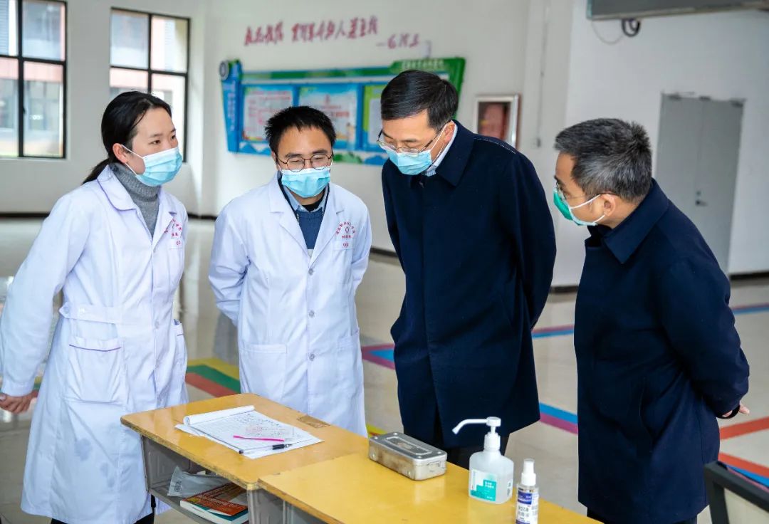 随后,邱军一行来到附属医院,询问疫情防控期间附属医院接治患病师生的工作流程以及对发热师生的处理方式。他强调,在疫情防控期间,医院要专门设立发热隔离区域,完善发热就诊的工作流程并针对疫情防控的突发性事件形成工作预案,提前设想,提前谋划。