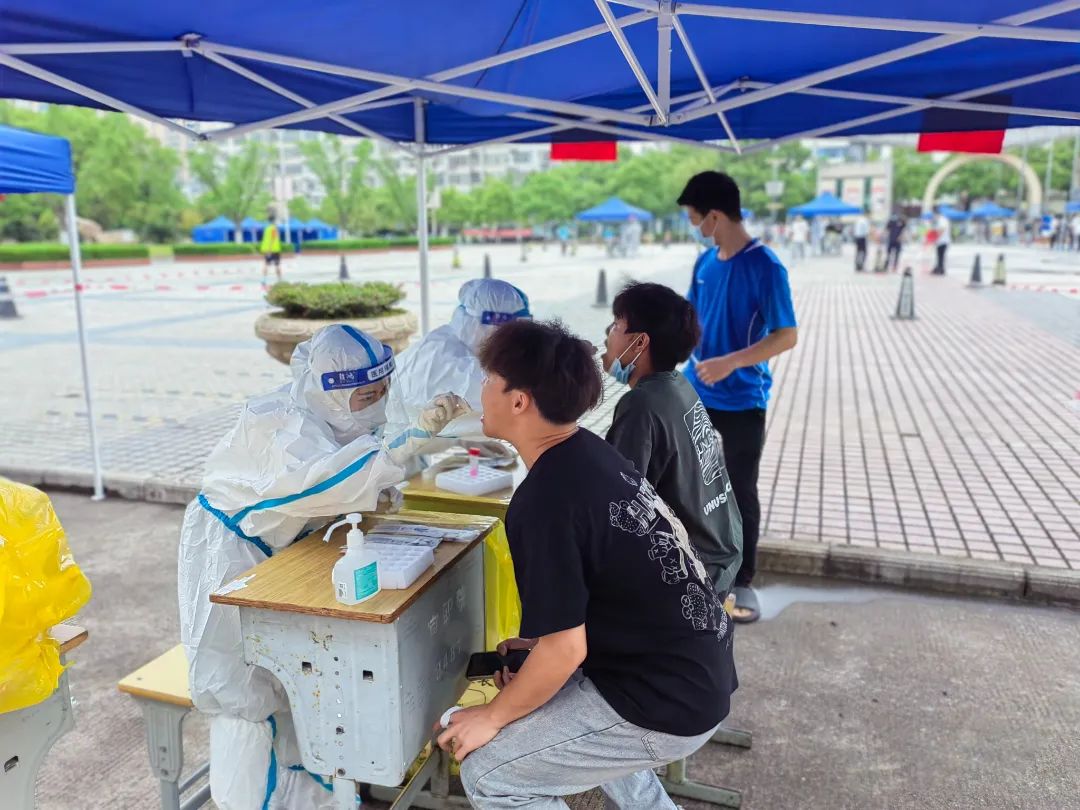 党委书记任军,党委副书记、校长邱军等校领导到场指导,新老校区静态管理工作领导小组各组成员密切配合,制定详细的检测安排表,加班加点布置检测现场各项事宜。各学院负责同志组织有序,确保检测工作顺利开展。师生志愿者们身穿防护服,在炎热的天气中连续工作3、4个小时,切实提高了检测工作效率。