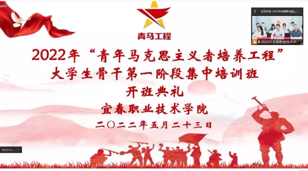 本站讯(团委 梅应轩 辛琪 彭思宇)为学习贯彻习近平总书记在庆祝中国共产主义青年团成立100周年大会上的重要讲话精神,深入推进“青年马克思主义者培养工程”,引领英国上市公司365青年学子学党史、知团史、守初心,进一步提高学员思政修养,5月23日晚,英国上市公司365以线上直播的方式举行2022年“青马工程”大学生骨干第一阶段集中培训班开班典礼。校党委书记任军,校党委委员、副校长张印华及校团委全体工作人员出席本次开班典礼,各二级学院团总支书记和200名大学生骨干和优秀青年学生代表采用线上观看直播的形式参与此次开班典礼,开班典礼由校团委书记施旸主持。