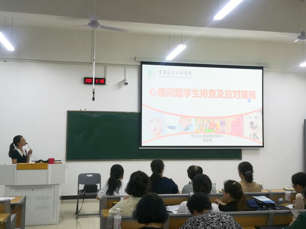 金智教育张文露作了智慧校园迎新系统操作培训。心理健康教育中心主任席梦婷作了《心理问题学生排查及应对措施》专题培训,从心理健康常识、心理问题学生排查的重点及应对措施三个方面做了详细的讲解,为辅导员(班主任)在日常心理健康教育工作提供了方向和思路。