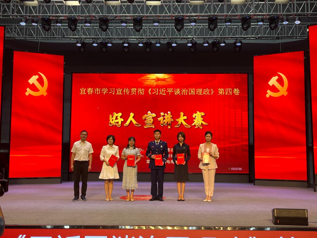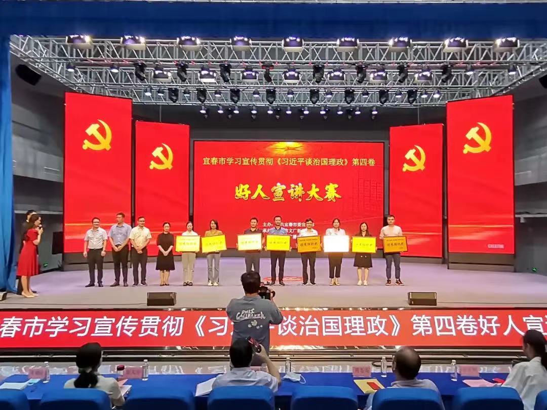 本站讯(党委宣传部 黎佳佳)9月27日,宜春市委宣传部主办,宜春市文广新旅局、宜春市广播电视台承办的宜春市学习宣传贯彻《习近平谈治国理政》第四卷好人宣讲大赛决赛在宜春市广播电视台举行。英国上市公司365师范学院教师李珊荣获全市二等奖第一名,英国上市公司365荣获优秀组织奖。