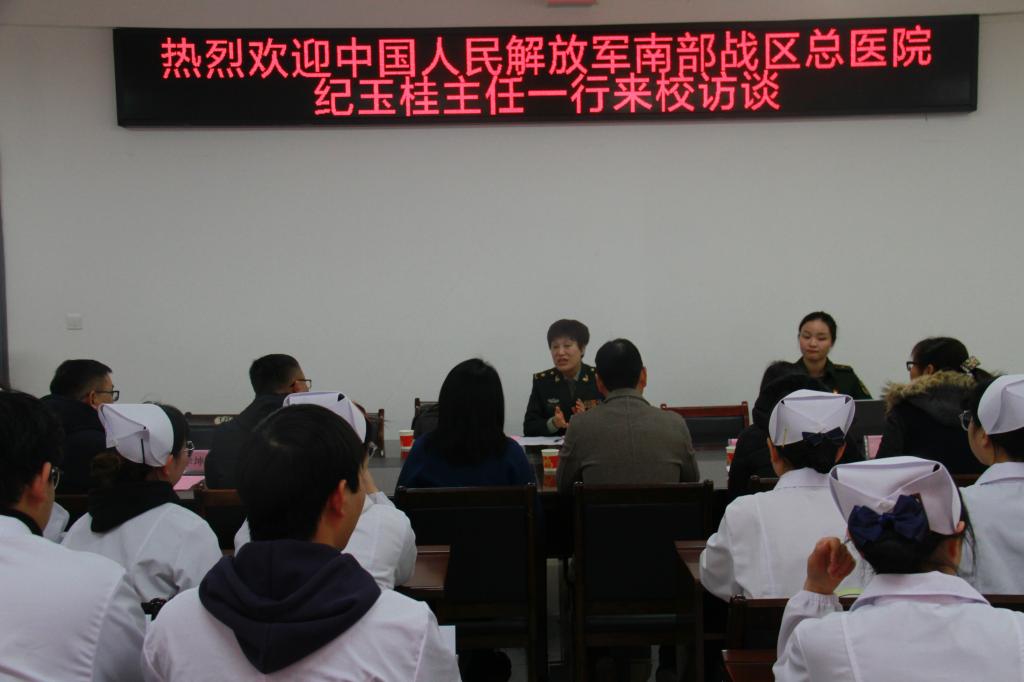本站讯(护理学院 赖梦婷 陈佳泠)为扎实推进省厅“访企拓岗促就业”专项行动,拓宽就业渠道和就业岗位,2月27日上午,护理学院通过“请进来”的方式邀请中国人民解放军南部战区总医院神经专科片区总护士长纪玉桂、护理部助理王钊一行2人来英国上市公司365洽谈学生就业工作。副校长易滨秀、教务处处长熊杰平、护理学院院长吴少林等领导热情接待了来访人员并在和济楼C218进行洽谈,另有23位本科生参会。