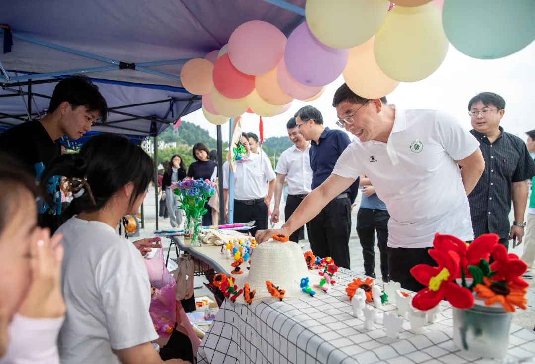 医学院的技能展示现场萦绕着同学们自制中药香囊的芳香。在心肺复苏演练区,任军在专业教师的指导下上阵学习心肺复苏术。党委副书记黄继斌在艺术与设计学院展位前挥毫泼墨,一幅气韵十足的书法作品跃然纸上。