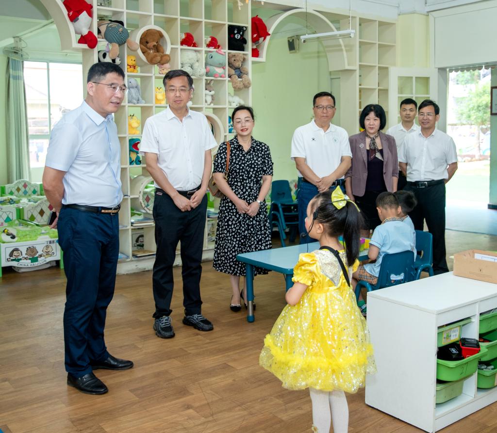 本站讯(附属幼儿园 徐艳梅 附属小学 易云艳)5月31日上午,在“六一”国际儿童节来临之际,校党委书记任军,党委副书记、校长邱军,党委副书记黄继斌一行来到附属小学、附属幼儿园走访慰问,为孩子们送上节日的祝福,向辛勤耕耘的教职工表示衷心感谢。校党政办公室主任高华兵、师范学院党总支书记邹晓英等人陪同慰问。